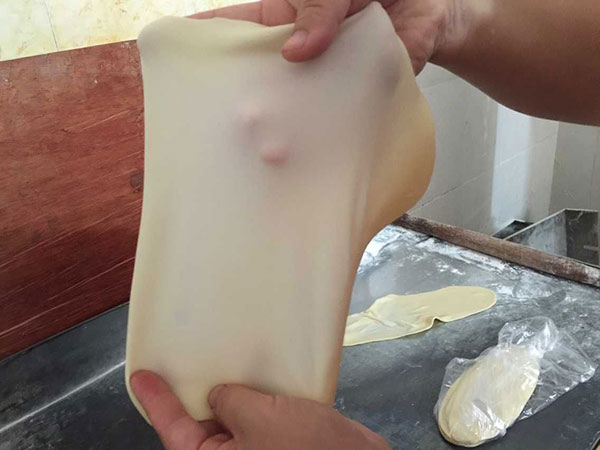 通過(guò)一品鮮燴面坯可以清晰看到報(bào)紙,就這證明一品鮮>燴面坯的勁道程度。